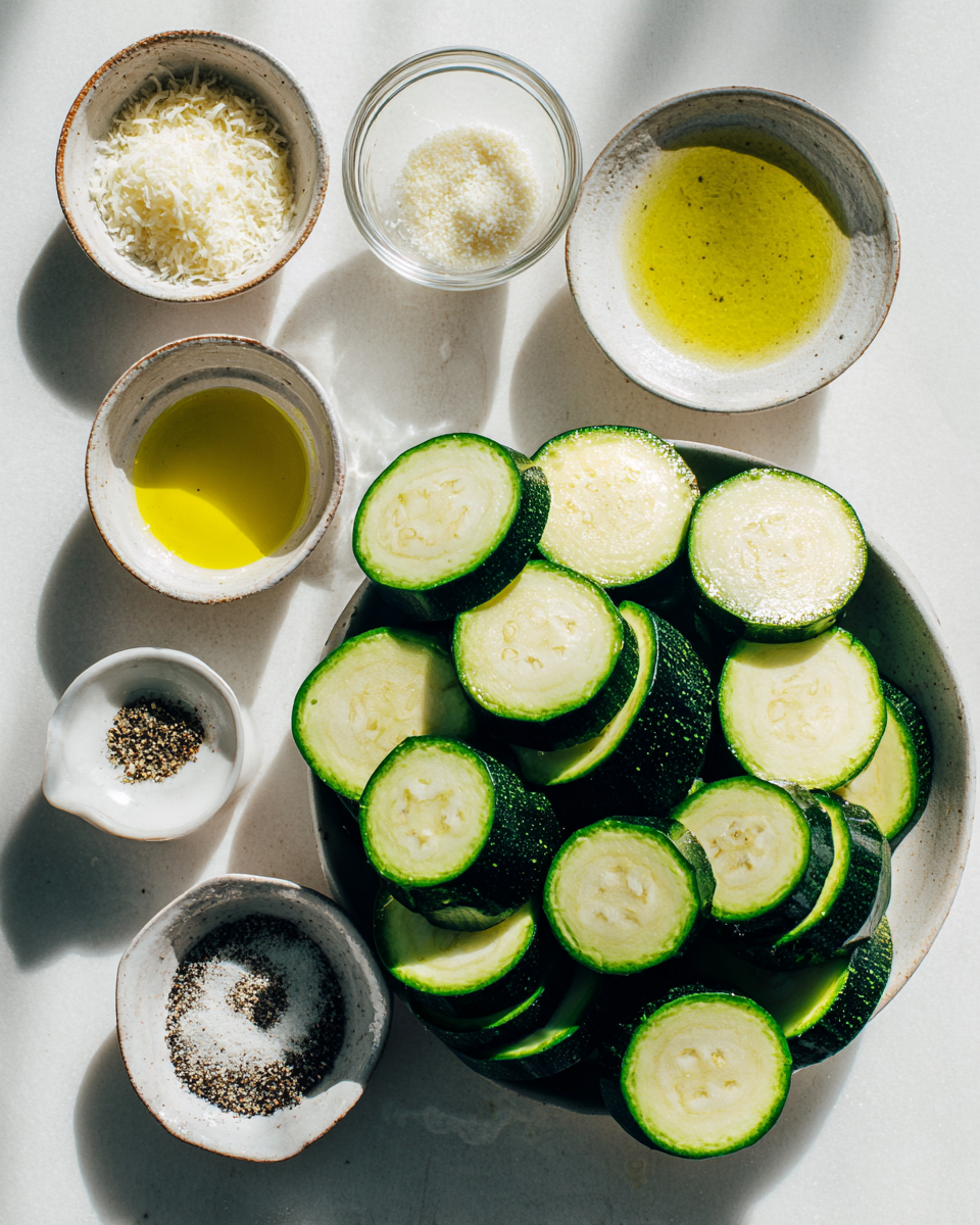 A simple and healthy side dish featuring crispy zucchini slices topped with Parmesan cheese and baked to perfection.