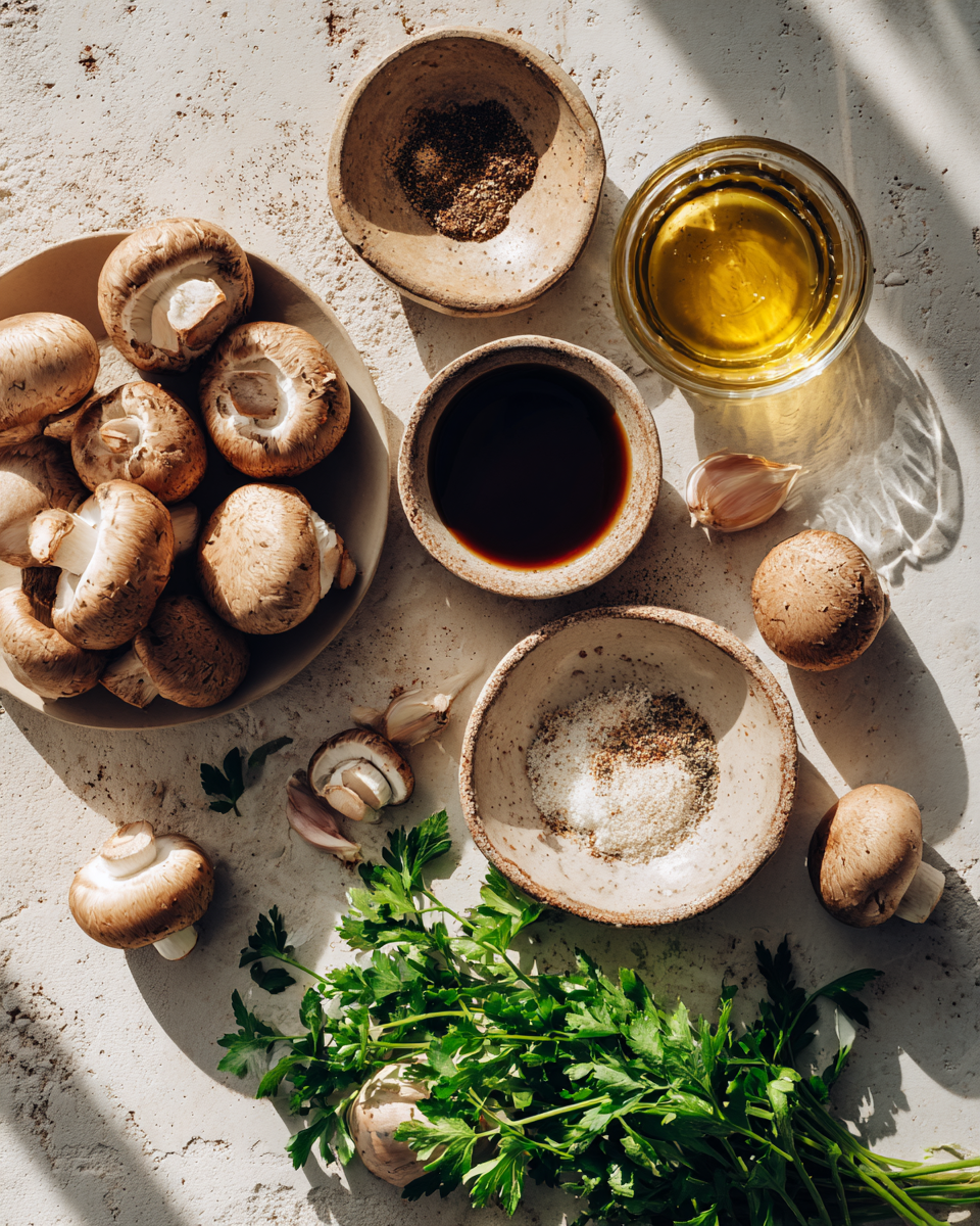 One of the best things about this recipe? You likely have most of these ingredients already! I love how simple the ingredient list is – just a handful of pantry staples transform humble mushrooms into something extraordinary. Here’s what you’ll need: