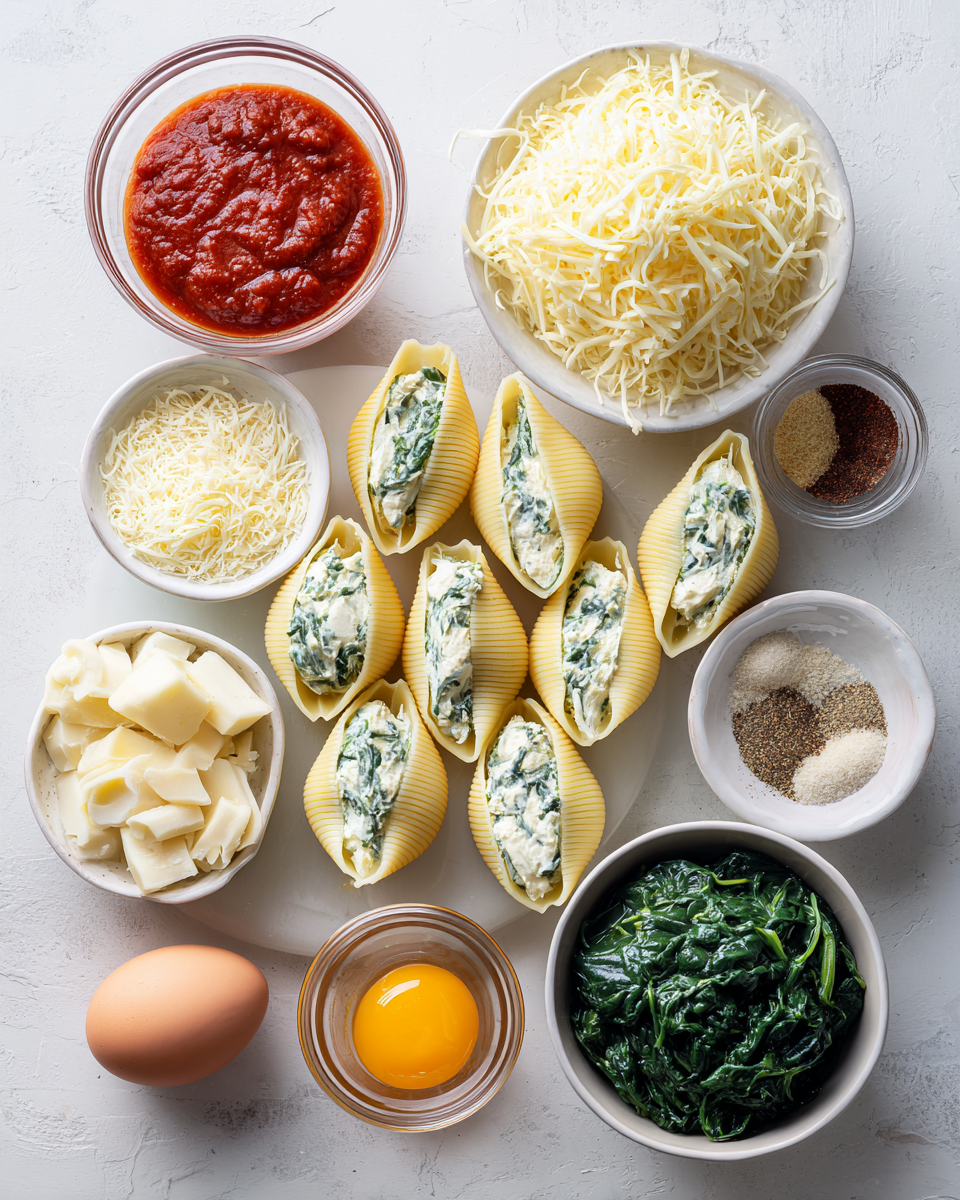 Ingredients for Easy Spinach and Ricotta Stuffed Shells