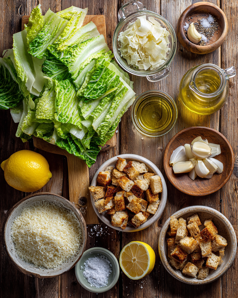 First things first: the romaine. Grab that head of lettuce and chop it into bite-sized pieces. I like mine on the chunkier side—big enough to hold dressing but small enough to get a perfect forkful. Wash those leaves really well (trust me, no one wants gritty salad), then spin them dry or pat gently with a clean towel. Waterlogged lettuce = sad, soggy salad. We’re going for CRISP.