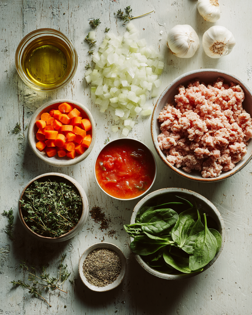 Ground turkey is naturally leaner than most ground chicken while still being packed with flavor. The mild taste lets all those vegetables and herbs shine through. That said, you can absolutely use ground chicken breast if you prefer – just watch the cooking time as it can dry out faster than turkey.
