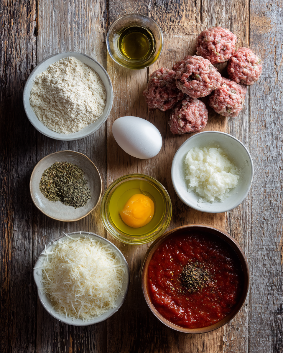- For the Turkey Meatballs: 1 lb ground turkey, 1/2 cup breadcrumbs, 1 egg, 2 cloves garlic (minced), 1 tsp dried oregano, 1/2 tsp salt, 1/4 tsp black pepper